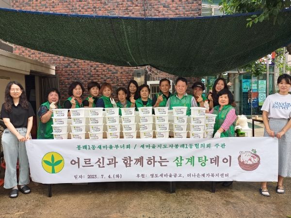[제주교통복지신문 김강석 기자] 영도구 봉래1동 새마을지도자협의회와 새마을부녀회는 지난 7월 4일, 건강한 여름나기를 기원하는‘어르신과 함께하는 삼계탕데이’를 개최했다.