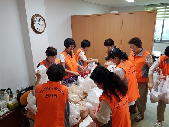[제주교통복지신문 김강석 기자] 사천시 종합사회복지관은 자원봉사단체인 천사회와 함께 재가복지 및 사례관리 50세대에 미숫가루와 간식거리(떡, 음료 등)를 전달했다고 5일 밝혔다.