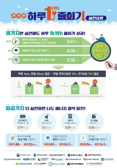 참가자들은 시민들에게 ▲에어컨 설정온도 1℃ 높이기 ▲여름철 실내온도 26℃ 유지하기 ▲사용하지 않는 조명 소등하기 ▲전자제품 플러그 뽑기 ▲문 닫고 냉방영업하기 등에 대한 전단지와 홍보물을 배부하며 에너지 절약 동참을 유도했다.