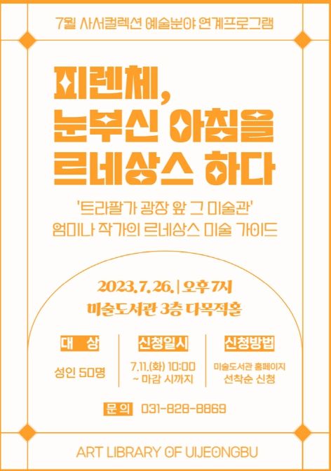 [제주교통복지신문 김강석 기자] 의정부미술도서관은 하반기의 시작인 7월을 맞아 ‘아침’을 주제로 사서컬렉션 연계프로그램을 운영한다.