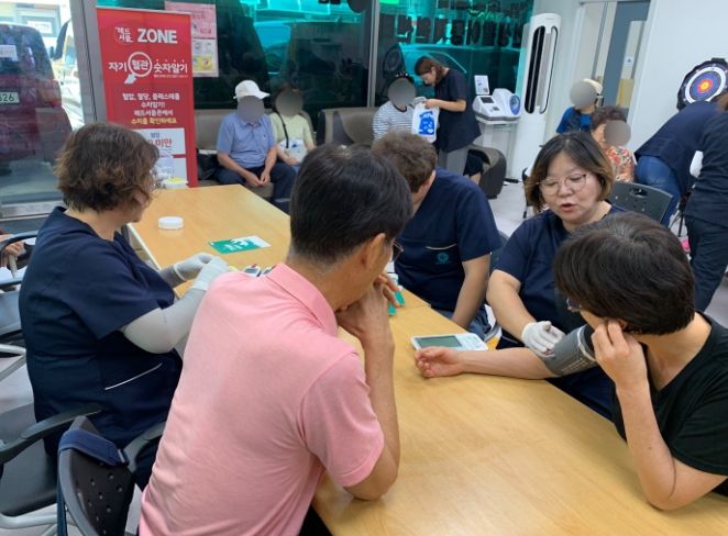 이번 교육은 시각장애인의 기초건강측정(혈압, 혈당, 콜레스테롤, 혈색소)을 시작으로 개인별 건강상담, 여름철 건강관리수칙, 낙상예방과 발생시 대처방법, 뇌졸중 증상알기 순으로 진행됐다.