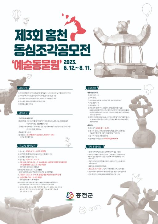 [제주교통복지신문 김강석 기자] 홍천군이 ‘예술동물원’을 주제로 제3회 홍천동심조각공모전을 개최한다.