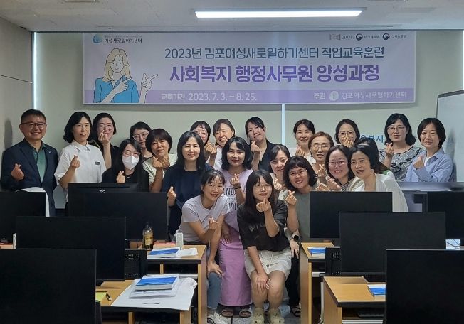 [제주교통복지신문 김강석 기자] 김포시는 3일 김포여성새로일하기센터에서 교육강사, 훈련생 등 20여 명과 함께 2023년 직업교육훈련 과정인 ‘사회복지 행정사무원 양성과정 개강식’을 개최했다.