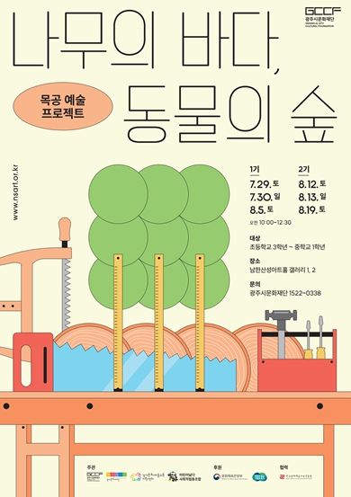 [제주교통복지신문 김강석 기자] (재)광주시문화재단(대표이사 오세영)은 목공 예술 프로그램 ‘나무의 바다, 동물의 숲’을 오늘 7월 29일부터 8월 26일까지 남한산성아트홀 전시실에서 운영한다고 밝혔다.