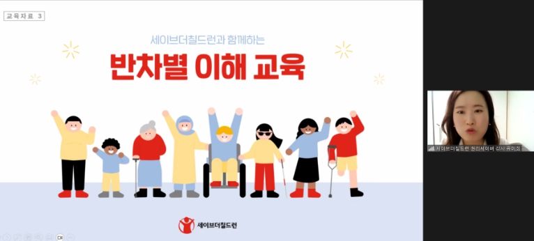 세이브더칠드런과의 업무 협약으로 실시되는 이 날 교육은 ‘아동권리 교육’이라는 주제로 올해들어 4회에 걸쳐 실시됐으며, 차이와 차별, 반차별의 원칙 및 인권과 아동권리, 반차별 실천 방법 등의 내용으로 진행됐다.