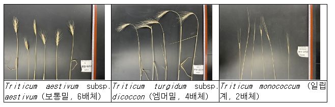 농촌진흥청 농업유전자원센터는 6배체 일반밀, 파스타 재료인 듀럼밀 등 4배체 밀, 외알밀 등 2배체 밀을 포함해 모두 3만 6,813개의 밀 유전자원을 보유하고 있다.