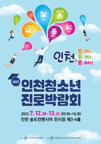[제주교통복지신문 김강석 기자] 인천광역시교육청은 2023년 7월 12일~13일 이틀간 ‘꿈을 꾸다, 꿈을 잇다, 꿈이 피다!’라는 슬로건으로 '2023 인천 청소년 진로박람회'를 개최한다고 5일 밝혔다.