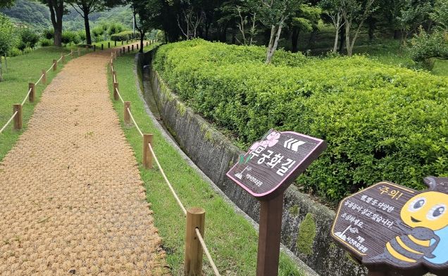 또한, 무궁화 길은 근로자들이 예취기, 전지 작업 시 위험구간이 많아 안전사고 예방을 위해 난간과 보행매트 등을 설치해 위험요소를 제거했고, 의자와 쉼터, 그네, 안내판을 설치해 휴식공간을 조성했다.