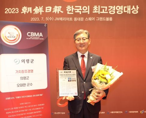 조선일보가 주최하고 기획재정부, 보건복지부, 중소벤처기업부 등이 후원하는 ‘한국의 최고경영대상’에서 의령군은 창조적 미래 건설을 위한 혁신 정책으로 주민 생활 편익을 증대시킨 노력 등의 성과를 인정받았다.