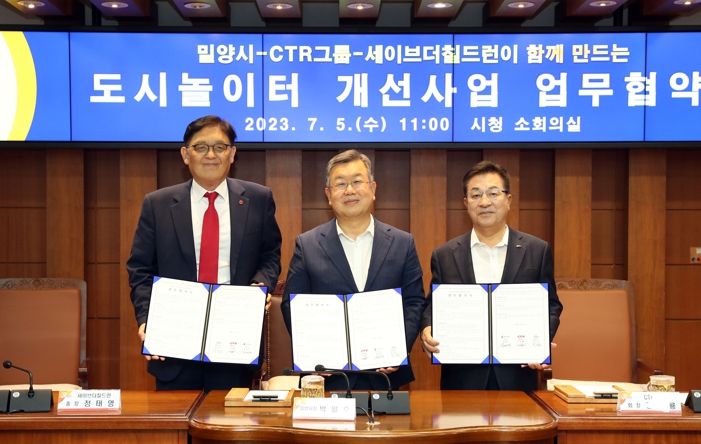 [제주교통복지신문 김강석 기자] 밀양시는 5일 CTR그룹, 세이브더칠드런과 도시놀이터 개선사업 업무 협약을 체결했다.