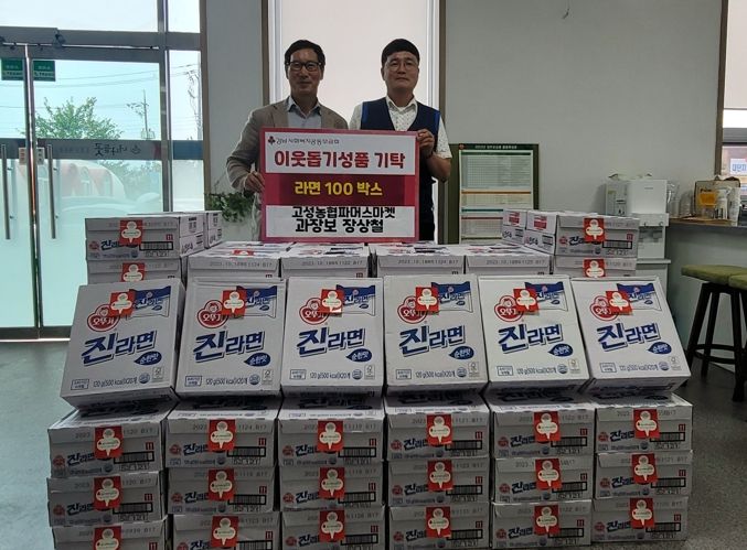 [제주교통복지신문 김강석 기자] 고성농협 파머스마켓 장상철 과장보는 7월 4일 고성읍행정복지센터를 방문해 어려운 이웃들에 전해달라며 라면 100박스를 기탁했다.