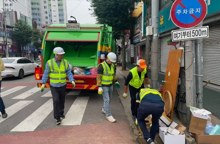 구인모 군수는 운행 첫날인 지난 3일 한국형 청소차에 탑승해 환경미화원들과 함께 쓰레기 수거작업을 하며 작업환경을 체험하고 현장의 애로사항도 들었다.