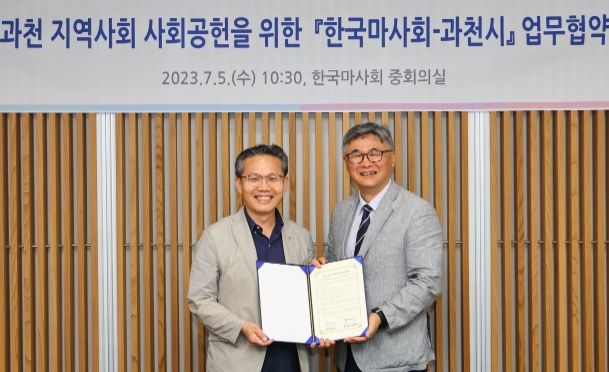 [제주교통복지신문 김강석 기자] 과천시와 한국마사회는 5일 서울경마공원에서 ‘지역 사회공헌을 위한 업무협약’을 체결했다.