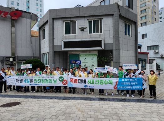 이날 캠페인은 해동병원 맞은 편 쿨링포그 현장 확인을 시작으로 리플릿 및 홍보물품 배부, 무더위쉼터 시설 점검 등을 통해 폭염 대응 행동요령을 집중홍보하고 안전신문고 참여를 독려했다.
