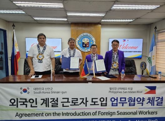 지난 4일 신안군 기획홍보실장 등 관계자들이 필리핀 리잘주 산마테오시청을 방문했고, 바르톨로메오 리베라 시장이 참석한 가운데 계절근로자 도입을 위한 업무협약을 체결했다. 이날 협약에서, 산마테오시는 우수한 인력을 선발하여, 소정의 교육을 이수한 후 신안군 어가에 배치하고, 신안군은 근로자의 근로환경을 개선하기 위해 힘쓰기로 합의했다.