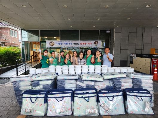 회원들은 이른 아침부터 모여 지역 어르신들이 건강하고 시원한 여름을 보내시기 바라는 마음으로 여름 보양식인 전복 삼계탕 150인분을 만들고 시원한 여름 이불(150만 원 상당)을 준비해 함께 전달하며 안부 인사를 전했다.