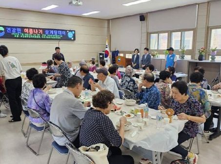 [제주교통복지신문 김강석 기자] 부산 서구 부민동 새마을부녀회는 지난 5일 주민자치위원회, 이웃사랑천사운동후원회 등의 후원으로 여름철 무더위를 건강하게 이겨낼 수 있도록 관내 취약계층 어르신 80여명에게 건강 보양식인 삼계탕을 대접하며 따뜻한 이웃사랑의 맛을 나누었다.