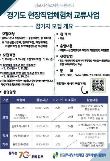 본 프로그램은 8월 2일과 4일 총 2일간 운영될 예정이다. 김포 관내에 많은 청소년에게 폭넓은 직업체험의 기회를 제공하려는 프로그램인 만큼 중복참여는 불가하다.