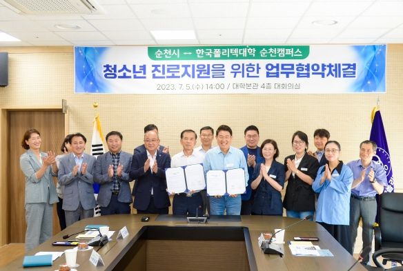 [제주교통복지신문 김강석 기자] 순천시와 한국폴리텍대학 순천캠퍼스가 5일 한국폴리텍대학 본관 4층 대회의실에서 청소년 진로지원을 위한 협약을 체결했다.