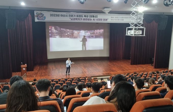 [제주교통복지신문 김강석 기자] 아산시가 지난 4일 시청 시민홀에서 공직자 대상 세 번째 전문가 트렌드 특강으로 장동선 궁금한 뇌연구소 대표를 초청해 ‘뇌 과학자가 바라보는 AI 시대의 미래’라는 주제로 강연을 펼쳤다.