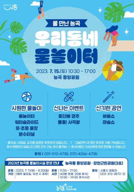 특히 능곡동 중앙공원 내 물놀이 시설 개장과 함께, 멀리 가지 않아도 동네에서 즐길 수 있는 여름 축제를 마련함으로써 주민과 아이 모두 행복한 능곡동을 조성하고자 기획했다.