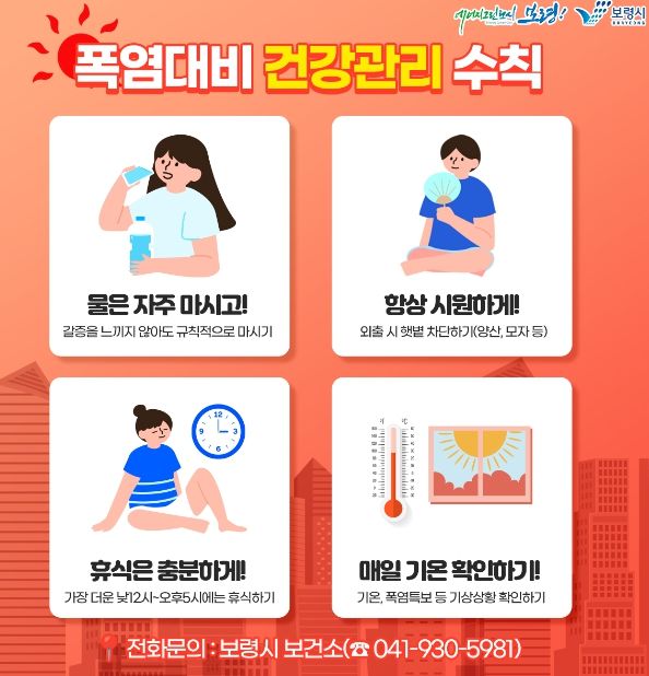 [제주교통복지신문 김강석 기자] 보령시 보건소는 무더위가 기승을 부리는 오는 8월 말까지 홀몸노인·거동 불편자 등 취약계층의 건강 악화를 예방하기 위하여 맞춤형 건강관리를 강화한다.