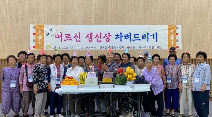 어르신 생신상 차려드리기 행사는 2023년 향촌동 지역사회보장협의체 활성화 사업의 일환으로 지난해 주거환경개선사업에 이어 올해는 관내 83세 어르신들을 모셔 직접 생신상을 대접했다.