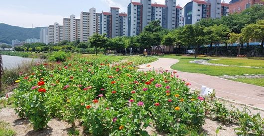 또한, 지난 5월에 남천둔치(정평동, 옥곡동) 유휴 공간에 파종한 백일홍과 천일홍 등이 싹이 돋아나 꽃망울이 맺히고, 일부는 꽃이 피고 있어 조만간 형형색색의 꽃들이 시민들의 시선을 사로잡을 것으로 기대된다.