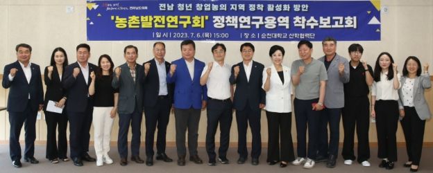 [제주교통복지신문 김강석 기자] 전남도의회 연구단체인 ‘농촌발전연구회’는 6일 순천대학교 산학협력관에서 ‘청년 창업농의 지역 정착 활성화 방안’ 착수보고회 갖고 연구 방향을 모색했다.