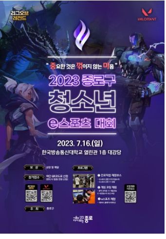 [제주교통복지신문 김강석 기자] 종로구가 오는 16일 한국방송통신대학교 열린관에서 ⌜2023 종로구 청소년 e스포츠 대회(부제: 중요한 것은 꺾이지 않는 마음)⌟를 개최한다.