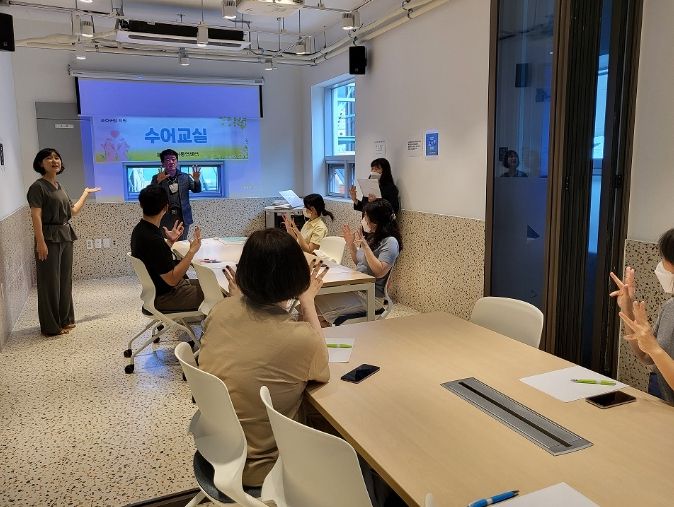 이 교육은 8월 7일부터 9월 1일까지 4주간(2개 반 운영) 진행되며 인사법, 지문자·지숫자 익히기, 체험 활동 등을 통해 수어의 기본을 익히게 된다.