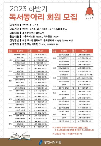 [제주교통복지신문 김강석 기자] 용인특례시가 독서동아리 회원으로 활동할 시민을 모집한다.