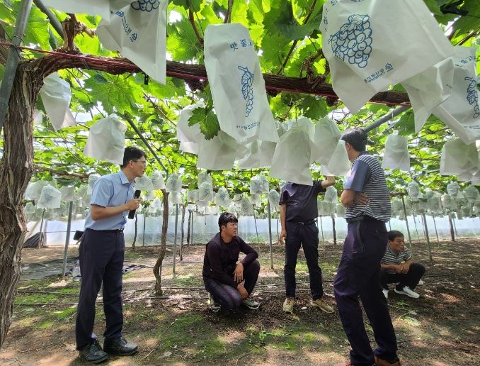 이번 현장학습은 충북농업기술원 포도연구소에서 소은진 연구사의 진행에 따라 다양한 품종과 시설재배 유형을 배우고 대전광역시 농업기술센터 실증시험포장에서 서진석 지도사의 설명에 따라 착색 및 당도 관리 방법과 전반적인 재배기술 실습을 진행했다.