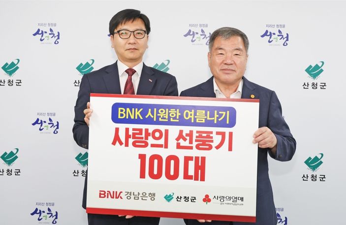 [제주교통복지신문 김강석 기자] 산청군은 BNK경남은행 산청지점이 7일 산청군청을 찾아 선풍기 100대(300만원 상당)를 기탁했다고 밝혔다.