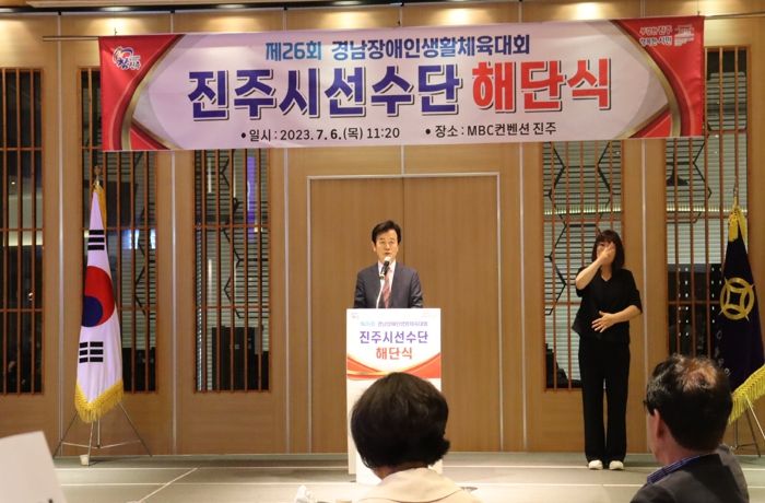 조규일 시장은 인사말을 통해 “우리 시를 대표해 진주시의 이름을 널리 알리고 좋은 성적을 거두고 오신 선수단 여러분께 축하와 감사인사를 드린다”며 “진주시장애인문화센터 건립을 통해 장애인 생활체육 활동이 더욱 활성화될 것으로 기대한다”고 말했다.