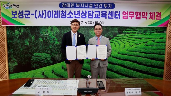 [제주교통복지신문 김강석 기자] 보성군은 6일 군청 2층 회의실에서 보성군과 (사)이레청소년상담교육센터가 장애인 복지시설 관련 민간 투자 사업을 위한 업무협약(MOU)을 체결했다고 밝혔다.