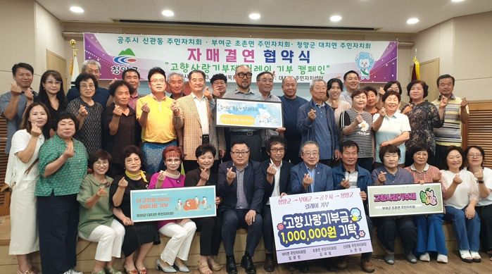 [제주교통복지신문 김강석 기자] 청양군은 지난 6일 대치면 주민자치센터에서 청양군(대치면)‧부여군(초촌면)‧공주시(신관동) 주민자치회장과 위원 40여명이 참석한 가운데 고향사랑기부금 기탁식 행사를 개최했다고 밝혔다.