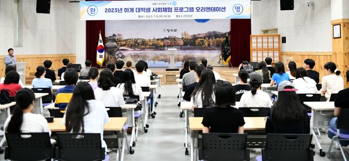장수군에 따르면, 군은 6일 군민회관에서 송주섭 부군수와 여름방학을 맞이한 대학생 45명이 참석한 가운데 본격적인 하계 대학생 사회체험 프로그램 시작을 위해 오리엔테이션을 실시했다.