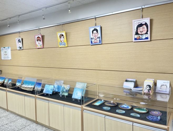 이번 전시는 홍하나 작가의 무더운 여름의 더위를 달래줄 시원한 레진아트공예와 김대섭 작가의 개성이 넘치는 유명인들의 모습을 담은 캐리커쳐 작품들로 구성됐다. 전시는 평일 오전 9시~오후 6시 행궁동 행정복지센터를 방문하는 누구나 자유롭게 관람이 가능하다.
