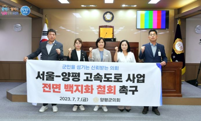 양평군의회는 “그동안 수도권 시민들의 식수원을 지키고자 각종 중첩규제 등의 피해속에서도 서울-양평 고속도로 사업추진으로 인구유입 등 지역경제 활성화를 기대하는 12만 4천여 군민들의 염원이 이뤄질 수 있도록 군의회는 끝까지 노력하겠다”고 말했다.