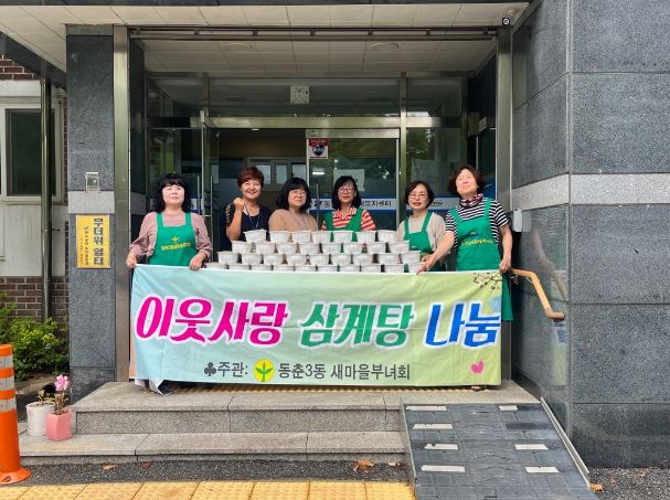 같은 날, 동춘3동에서는 새마을부녀회 회원들이 홀몸 어르신을 대상으로 직접 만든 ‘이웃사랑 삼계탕’ 50인분을 전달하는 행사를 열었다.