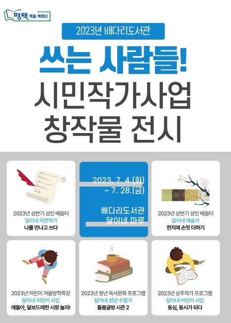 [제주교통복지신문 김강석 기자] 평택시 배다리도서관이 오는 28일까지 '쓰는 사람들! 시민 작가 사업' 창작물을 전시한다.