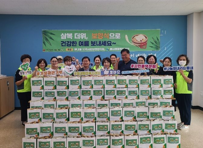 한규복 별내동 지역사회보장협의체 위원장은 “오는 초복을 앞두고 장마와 폭염 등으로 지치신 어르신들이 삼계탕을 드시고 건강하게 여름을 나실 수 있길 바란다.”라며“앞으로도 이웃과 함께 더불어 사는 사회를 만들기 위해 서로를 위하는 마음을 담아 주민의 뜻이 반영된 다양한 활동을 추진하겠다.”라고 말했다.