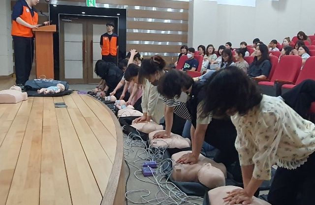 안전교육은 응급상황이 발생했을 때 신속하게 필요한 조치를 할 수 있도록 ▲응급상황 행동요령, ▲주요 내·외과적 응급처치 이론, ▲영아·유아·소아 대상 기도폐쇄 대처방법 및 심폐소생술 실습 등으로 구성되어 있으며, 교육기간 중 관내 어린이 이용시설 종사자 650여명이 교육을 이수했다.