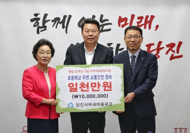 이날 전달된 성금 1천만 원은 당진서부새마을금고 서부 본점 및 2개 지점에서 조성한 기금으로 관내 초등학생들의 안전한 등하굣길 조성을 위해 마련됐다.