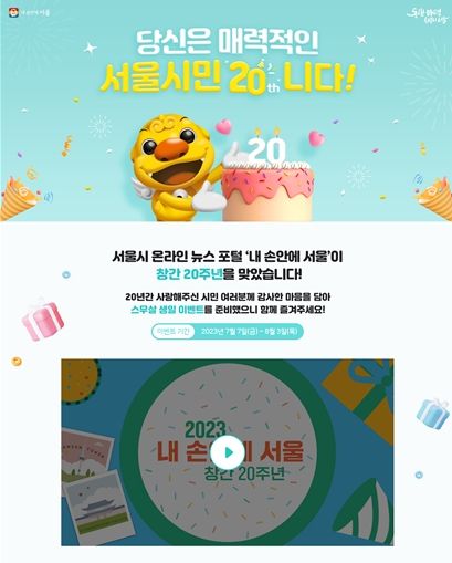 이 밖에도 오세훈 서울시장의 축하인사와 20년과 함께한 시민기자들의 활동소감 영상을 비롯해 '내 손안에 서울' 발자취를 숫자로 정리한 인포그래픽 등 다양한 콘텐츠를 이벤트 특별 웹페이지를 통해 만나볼 수 있다.