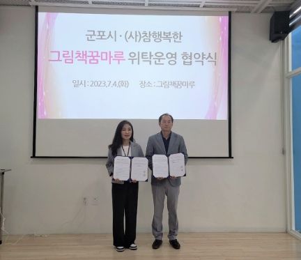 [제주교통복지신문 김강석 기자] 군포시는 7월 4일 사단법인 참행복한과 그림책꿈마루의 위탁운영 협약을 체결했다. 지난 5월 민간위탁 기관 공개모집을 거쳐 6월 21일 선정위원회에서 선정된 사단법인 참행복한은 2026년 6월까지 3년간 그림책꿈마루를 운영·관리하게 된다.
