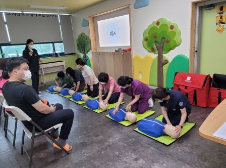 지난 4일 진행한 심정지 상황 발생 교육은 거창소방서 전문 강사를 초빙해 심폐소생술에 대한 이론, 동영상 시청, 실제 적용 사례, 교육용 마네킹 실습 등을 진행하고, 특히 골든타임(4분)의 중요성에 대해 교육했다.