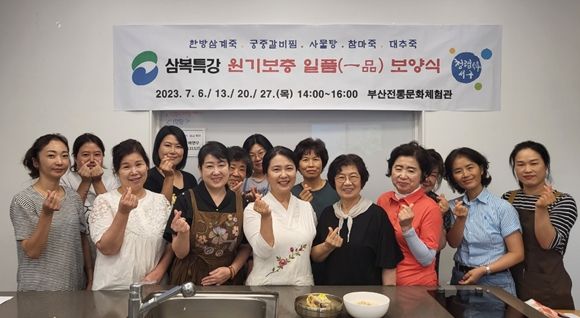7월 6일부터 27일까지 매주 목요일 14시~16시에 진행되며 예부터 귀한 보양식으로 각광받아 온 한방삼계탕(죽), 궁중갈비찜, 사물탕, 참마죽, 대추죽, 인삼속미죽 등을 만들어 볼 수 있다.