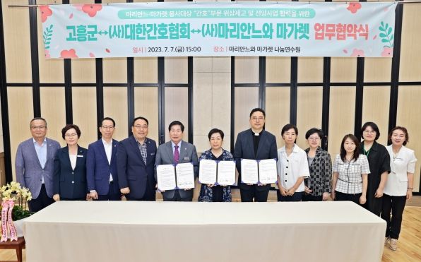 [제주교통복지신문 김강석 기자] 고흥군은 7일 소록도 마리안느·마가렛 나눔연수원에서 (사)대한간호협회, (사)마리안느와 마가렛과 함께 마리안느·마가렛 봉사대상 “간호”부문 선정 대행과 선양사업 협력 및 나눔연수원 이용 활성화를 위한 업무협약을 체결했다.